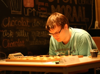 Wouter Sipma en Mike Koopmanschap zijn allebei jonkies, die nergens last van zouden horen te hebben. En dat bleek ook zo. Sipma zette zijn partij goed op en leek kansen te krijgen, maar Koopmanschap redde zich met een semispectaculaire remisecombinatie met een eindslag over zes schijven. Niets aan het handje, punt voor beiden.