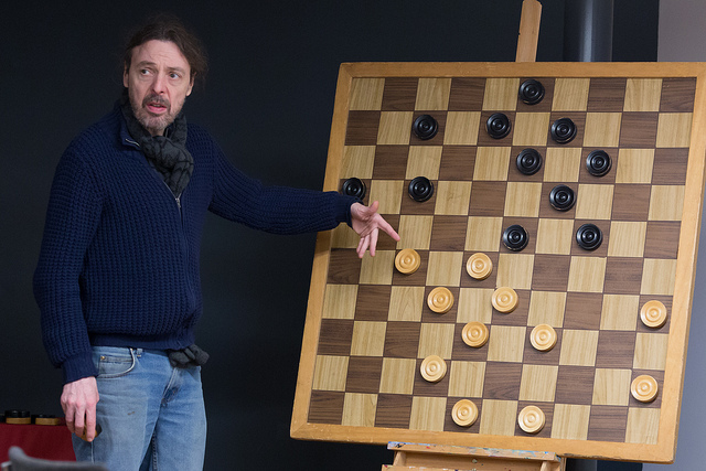 Paul Oudshoorn tijdens het NK dammen 2013 in Steenwijk.