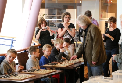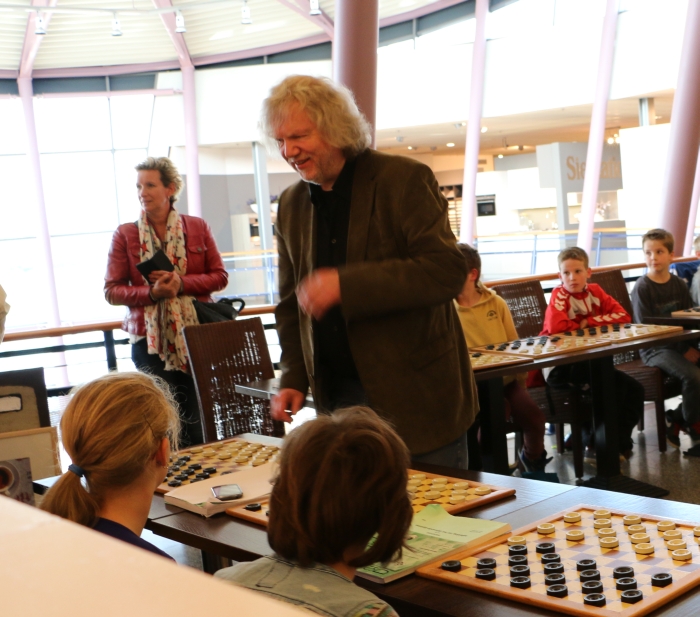 Gistermiddag (woensdag 9 april 2014 om precies te zijn) was er een damsimultaan van Ton Sijbrands tegen de jeugd uit Huissen en verre omstreken. Ik had de eer om de Grand Maître te mogen introduceren.
